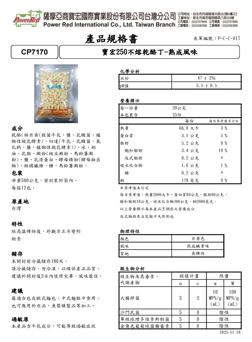 每包500公克±3%,每箱12包。