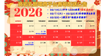【重要通知】春節期間 (2026/02/10 ~ 2026/02/22) 將暫停網路訂購與出貨作業。